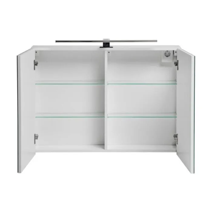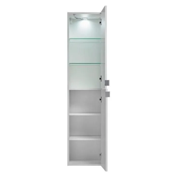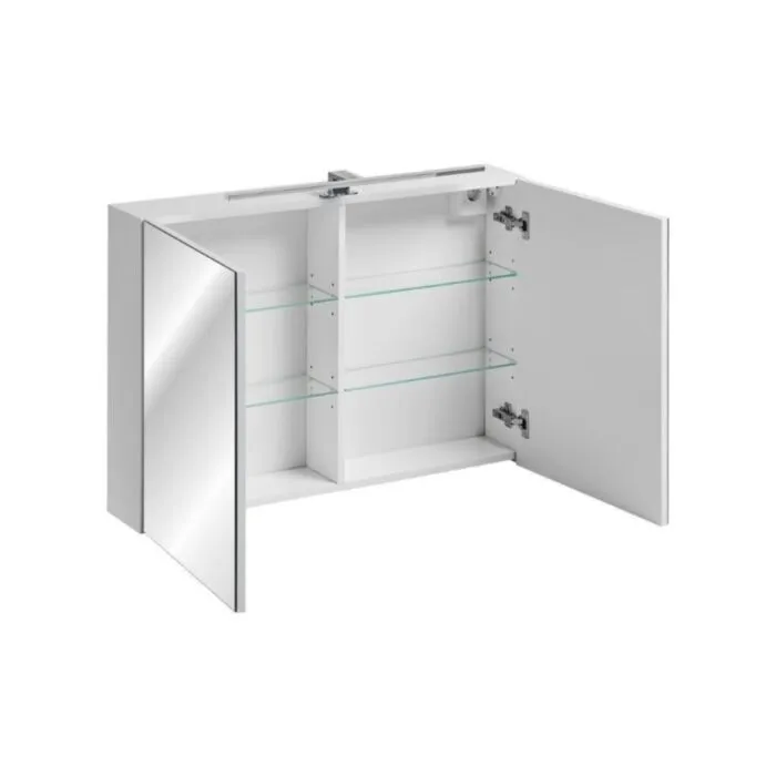 Kopalniški blok AURORA 90 2 je narejen iz kvalitetne laminirane plošče. V ceno je vključeno 1x LED lučka, 1 x omarica pod umivalnikom, 1 x omarica z ogledalom, 1 x visoka omara ter plošča pod umivalniki 90 cm. V omarah so police iz stekla. Lahko dokupite tudi umivalnik.