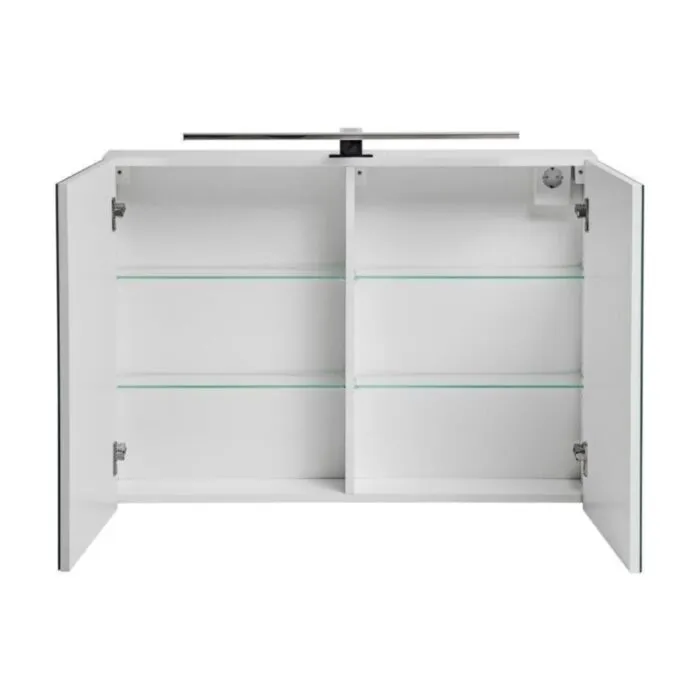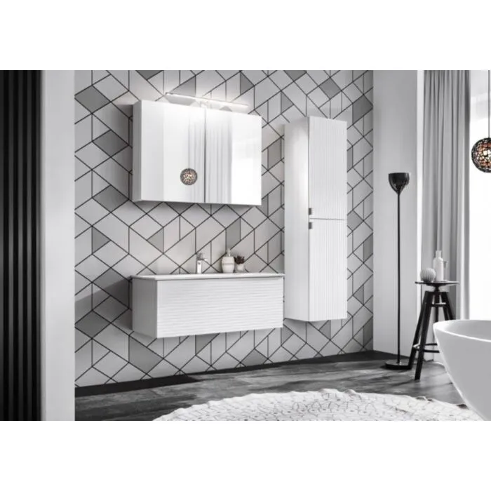 Kopalniški blok AURORA 90 3 je narejen iz kvalitetne laminirane plošče. V ceno je vključeno 1x LED lučka, 1 x omarica pod umivalnikom, 1 x omarica z ogledalom, 1 x visoka omara. V omarah so police iz stekla. Lahko dokupite tudi umivalnik.