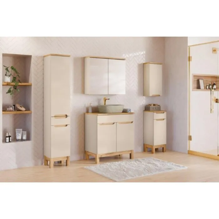 Kopalniški blok BORI 80 je hkrati enostaven in eleganten. Elementi so nežne kašmir barve v kombinaciji s hrastom, to je popolna kombinacija, ki se poda vsakemu stilu kopalniškega interierja. Izdelan je iz laminirane ter MDF plošče. Vsebuje mehko zapiranje.