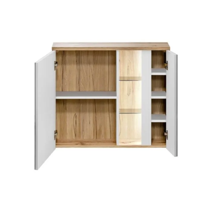 Kopalniški blok HAMA 2 je odlične kvalitete, narejen iz kakovostnih materialov. Vsebuje ogledalo, umivalnik, omarico pod umivalnikom in visoko visečo omaro. Visoka omara in omarica za umivalnik vsebujeta LED razsvetljavo. Kopalniški blok ima mehko zapiranje in keramični umivalnik.