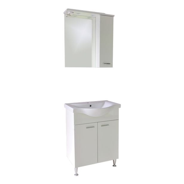 Kopalniški blok MEGALANT RONDA 65 v beli barvi. Sestavljajo ga omara, umivalnik in ogledalo.