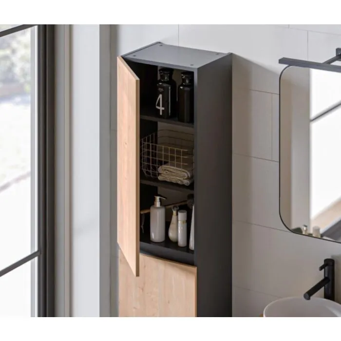 Kopalniški blok MOTO 80 je odlične kvalitete, narejen iz kakovostnih materialov. Vsebuje umivalnik, omarico pod umivalnikom, omarico z ogledalom ter visoko visečo omaro. Kopalniški blok ima mehko zapiranje.