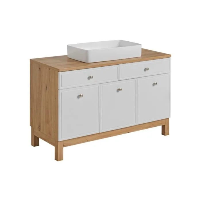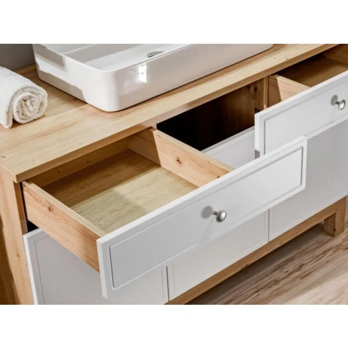 Kopalniški blok SAMSEA 120 je odlične kvalitete, narejen iz kakovostnih materialov. Vsebuje umivalnik, omarico pod umivalnikom, omarico z ogledalom, visečo in stoječo omarico ter visoko omaro. Kopalniški blok ima mehko zapiranje.