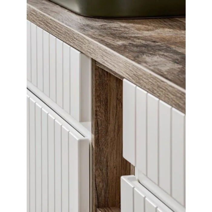 Kopalniški blok SUMMER 180 je hkrati enostaven in eleganten, odlikujejo ga vertikalne žlebovi in integriran oprijem – ta kombinacija naredi kolekcijo nežno in moderno. Beli elementi se podajo vsakemu stilu kopalniškega interierja. Kolekcija je zasnovana za ljudi, ki cenijo praktične rešitve v kombinaciji z edinstvenim slogom. V ceni je všteto 1 x visoka omara, 2 x omarici za umivalnik, 1 x odprti poličnik, 1 x nadpultna plošča, 2 x ogledali, 2 x LED lučki ter po želji lajko dokupite 2 x umivalnik.