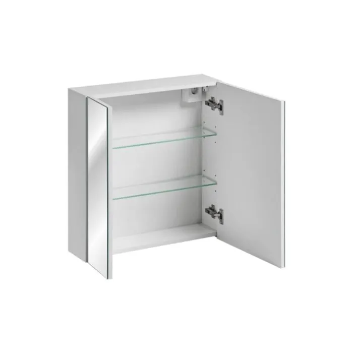 Kopalniški ogledalo AURORA 60 je narejeno iz kvalitetne laminirane plošče. Ta kolekcija je posebna, ker uporablja horizontalno rezkanje front. Ima moderen videz in funkcijo mehkega zapiranja. Vsebuje elegantne kromirane ročaje ter steklene police v omari.