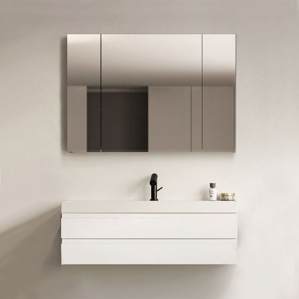Kopalniško ogledalo s toaletno omarico Kolpa San iz linije Naomi je sestavljena iz trpežnih laminiranih plošč (LTD) iz oplemenitene iverne plošče, celotno sprednjo stran pa prekriva ogledalo.
