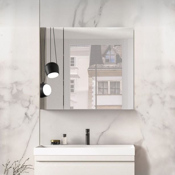 Toaletna omarica ima na prednjem delu vrat ogledalo, ki na spodnjem delu presega korpus omarice, kar nam omogoča enostavno odpiranje in zapiranje. Sami tečaji vrat so lahko nameščeni na levi ali desni strani, tako da lahko prilagodite odpiranje kopalniške omarice po svojih željah.