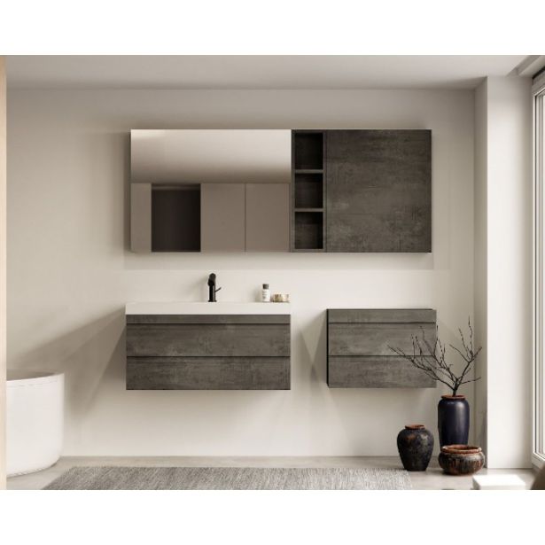 Toaletna omarica ima na prednjem delu vrat ogledalo, ki na spodnjem delu presega korpus omarice, kar nam omogoča enostavno odpiranje in zapiranje. Sami tečaji vrat so lahko nameščeni na levi ali desni strani, tako da lahko prilagodite odpiranje kopalniške omarice po svojih željah.