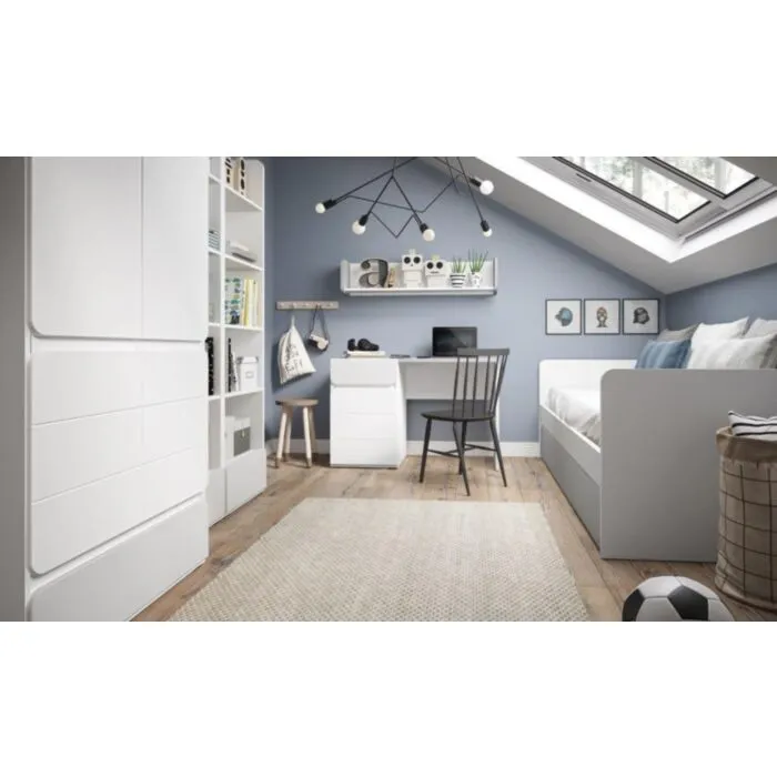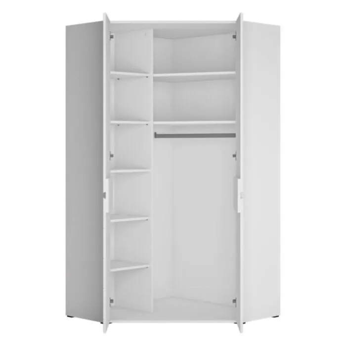 Kotna garderobna omara ALBA je popolna rešitev za vaš prostor, saj ponuja veliko prostora za shranjevanje. Izdelana je iz kakovostnega MDF-ja z ABS robovi, zagotavlja trpežnost in dolgotrajno uporabo. Kotna zasnova omogoča, da se popolnoma prilega kateremu koli kotičku spalnice, garderobe ali otroške sobe.