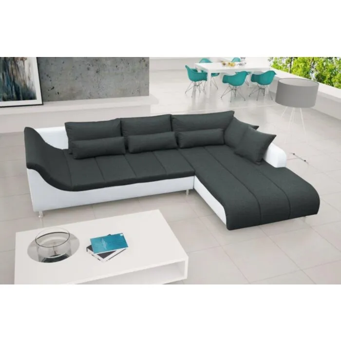 Kotna garnitura ALEX je kotna sedežna garnitura, katera je narejena iz vrhunskega umetnega usnja in blaga. Garnitura ima levi ali desni kot, katerega morate izbrati. Sedežna je zelo prostorna ter udobna. Sedežna je vzmetena z valovitimi vzmetmi. Zraven prejmete pripadajoče blazine kakor na sliki.