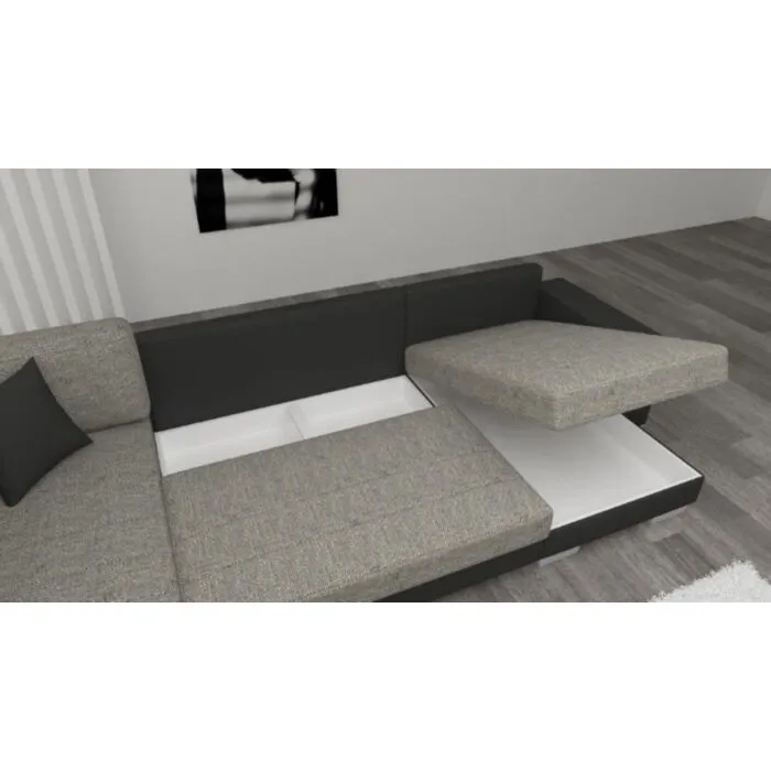 Kotna sedežna garnitura ALFRED 2 je kotna sedežna garnitura, katera je narejena iz umetnega usnja in blaga. Garnitura se raztegne v ležišče ter vsebuje zaboj za shranjevanje posteljnine. Sedežna je vzmetena z Bonell vzmetmi. Garnitura ima levi ali desni kot, katerega morate izbrati. Moderne linije vas bodo prepričale.
