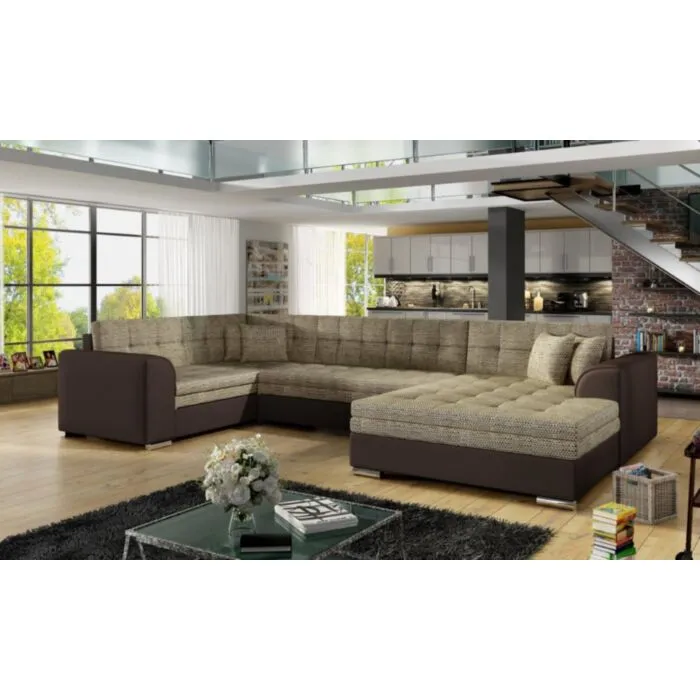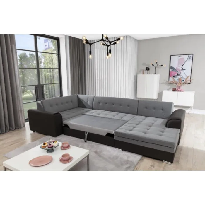 Kotna sedežna garnitura DAMARIO 4 je odlična garnitura po odlični ceni. Sedežna se raztegne v dodatno ležišče. Dizajn, kateri vas bo prepričal, zaradi njene velikosti in udobnosti. Narejena je v kombinaciji umetnega usnja in blaga. Sedežna je vzmetena z valovitimi vzmetmi. Garnituri je potrebno določiti levi ali desni kot.