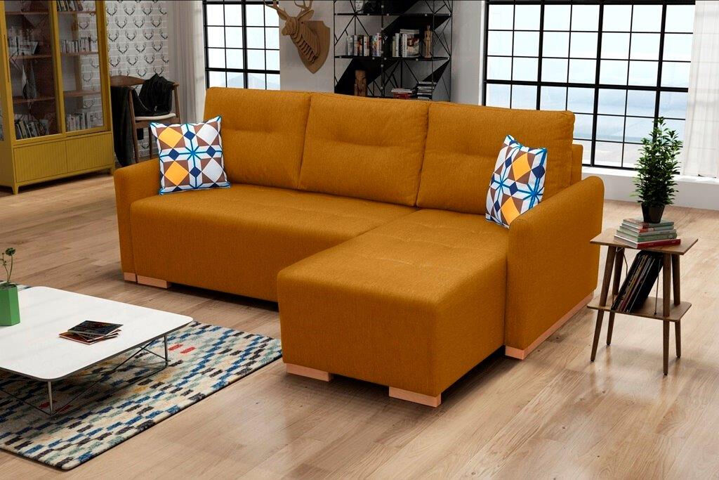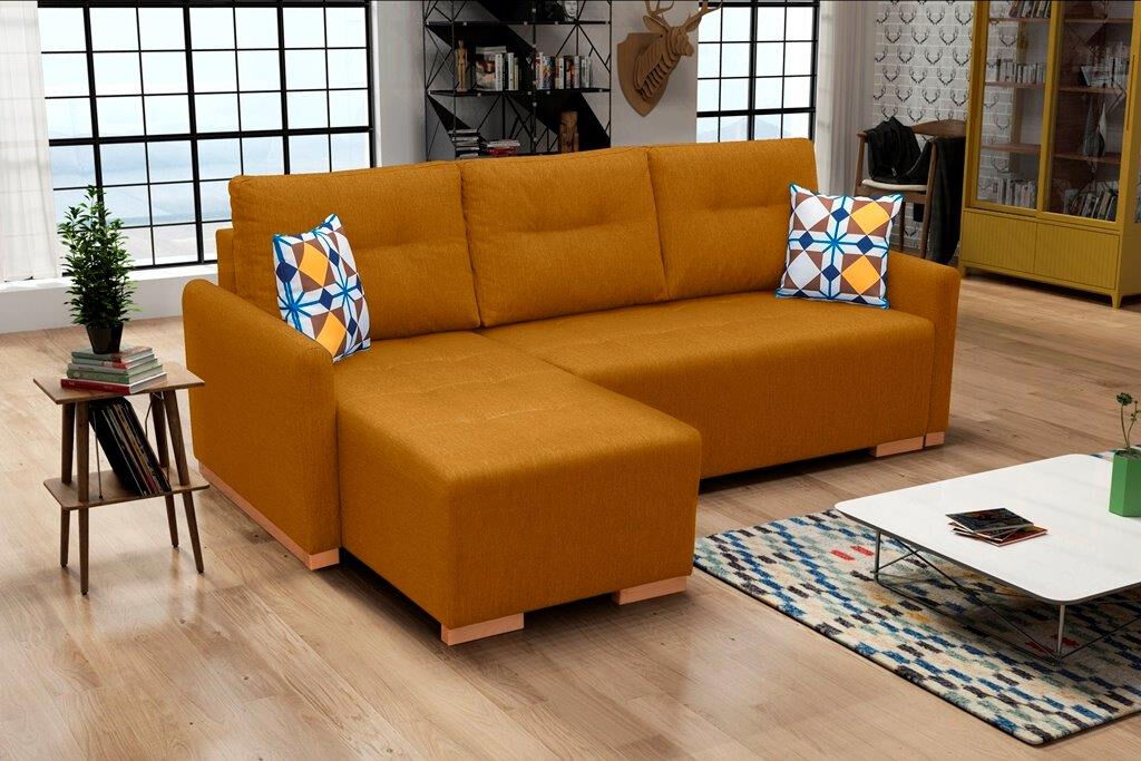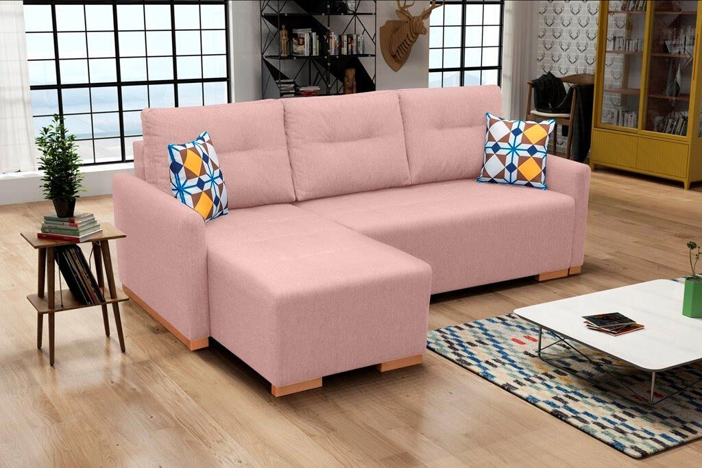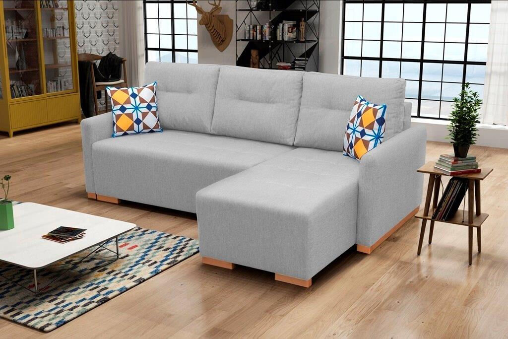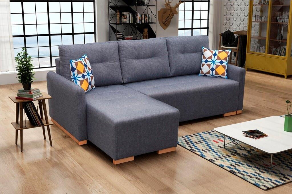 Kotna sedežna garnitura DAŠA je sedežna s stilom skandinavskega sloga. Dobavljiva v različnih barvah tkanine. Garnitura ima levi ali desni kot, katerega morate izbrati. Praktična je za uporabo saj se raztegne v ležišče, ter vsebuje zaboj za shranjevanje. Vzmetena je z valovitimi vzmetmi. Zraven garniture prejmete dve okrasni blazini, kakor vidno na slikah.