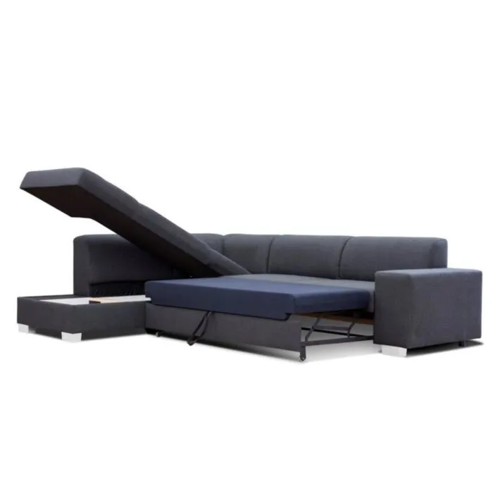 Kotna garnitura DEJAN je kotna sedežna garnitura, katera je narejena iz vrhunskih materialov. Sedežna se raztegne v ležišče z mehanizmom delfin, ter vsebuje zaboj za shranjevanje. Garnitura ima levi ali desni kot, katerega morate izbrati. Vzmetena je z valovitimi vzmetmi.