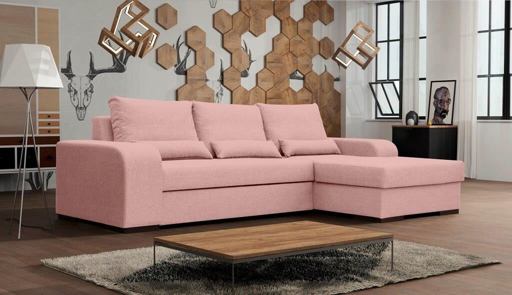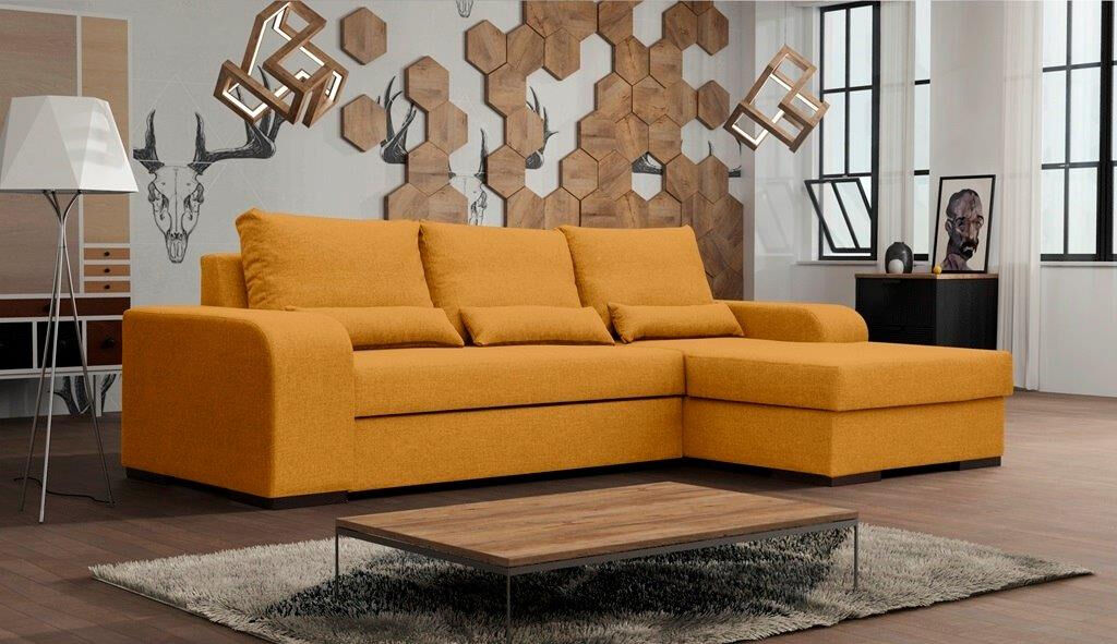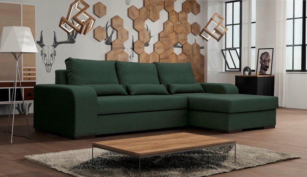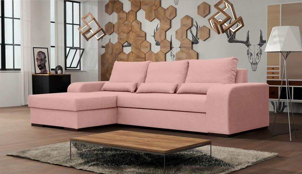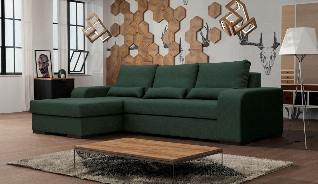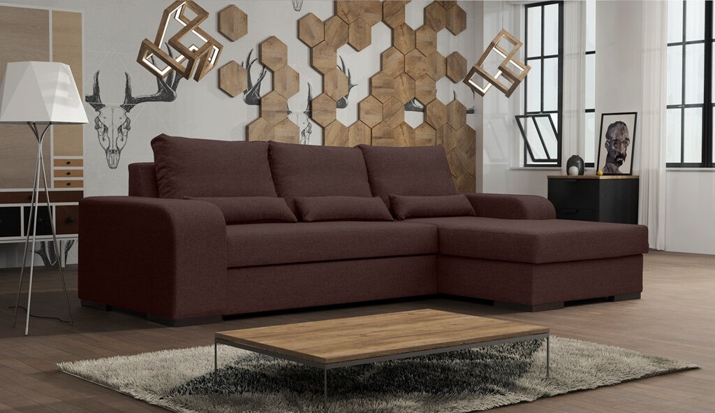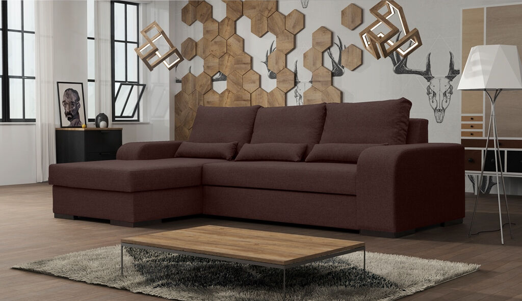 Kotna sedežna garnitura DOMEN je kotna sedežna garnitura, katera je narejena iz vrhunskih materialov. Sedežna se raztegne v dodatno ležišče ter vsebuje zaboj za shranjevanje. Garnitura ima levi ali desni kot, katerega morate izbrati. Vzglavniki so všteti v ceno.