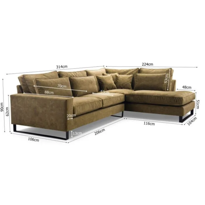 – D: 314 cm x G: 224 cm x V: 90 cm