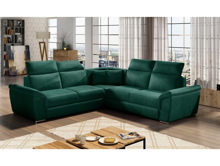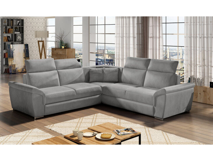 Kotna sedežna garnitura FERDO 4 je kotna sedežna garnitura, katera je narejena iz kvalitnetnega velvet blaga. Garnitura se raztegne v ležišče z delfin mehanizmom. Ima predal za shranjevanje in štiri nastavljive vzglavnike. Garnituri pripadata tudi dve okrasni blazini. Sedežna je vzmetena z valovitimi vzmetmi. Garnitura je univerzalna zato jo lahko postavite levo ali desno. Moderne linije vas bodo prepričale.