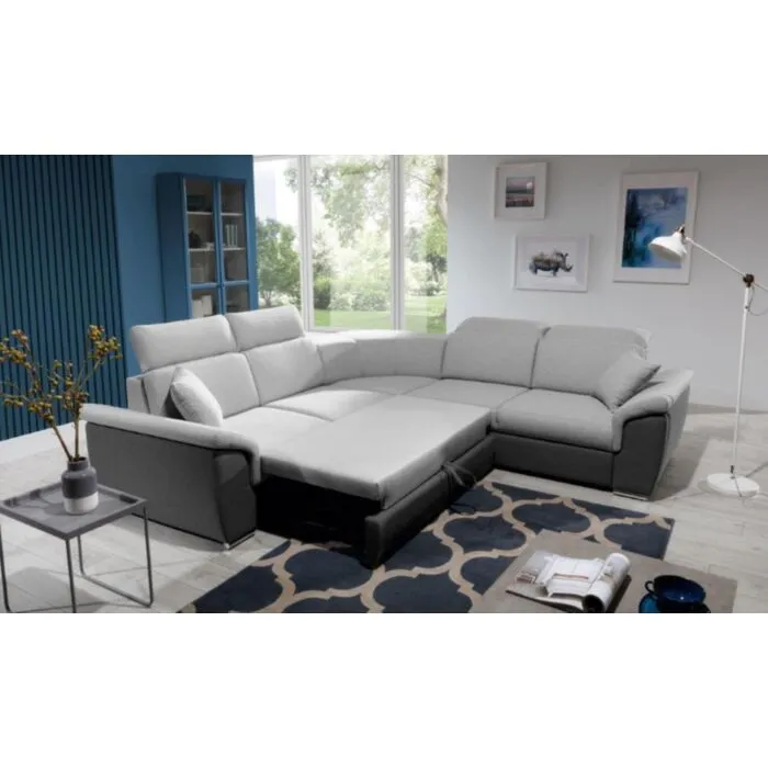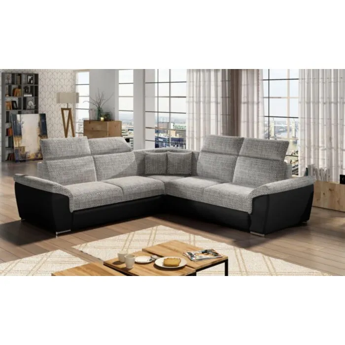 Kotna sedežna garnitura FERDO je kotna sedežna garnitura, katera je narejena iz umetnega usnja in blaga. Garnitura se raztegne v ležišče z delfin mehanizmom. Ima predal za shranjevanje in štiri nastavljive vzglavnike. Garnituri pripadata tudi dve okrasni blazini. Sedežna je vzmetena z valovitimi vzmetmi. Garnitura je univerzalna zato jo lahko postavite levo ali desno. Moderne linije vas bodo prepričale.