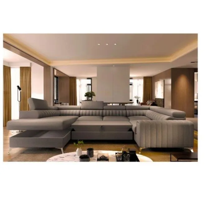Kotna sedežna garnitura IZY je udobna, elegantna in predvsem funkcionalna. Vzmetena je z valovitimi vzmetmi. Ima nastavljivo vzglavje. Opremljena je tudi z zabojem za shranjevanje posteljnine, ter vsebuje tudi dodatno ležišče saj ima raztegljivi dolphin mehanizem.