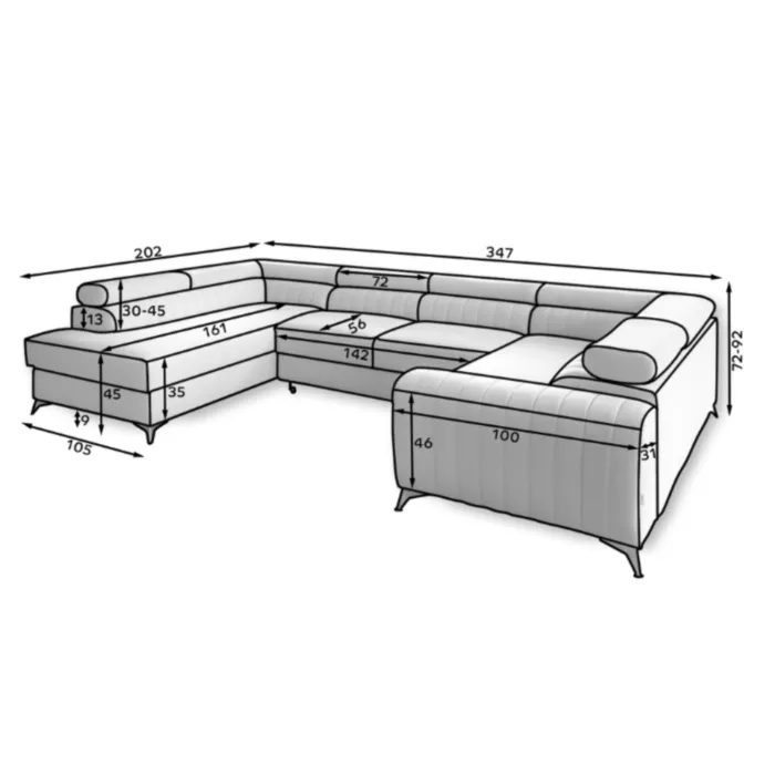 – D: 347 cm x G: 202 cm x V: 92 cm