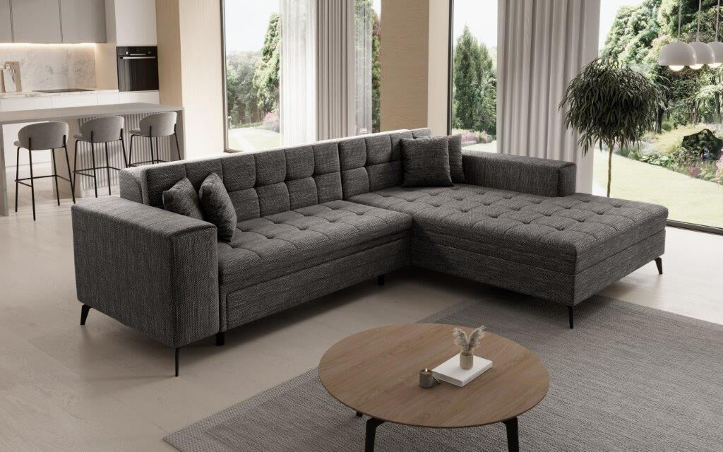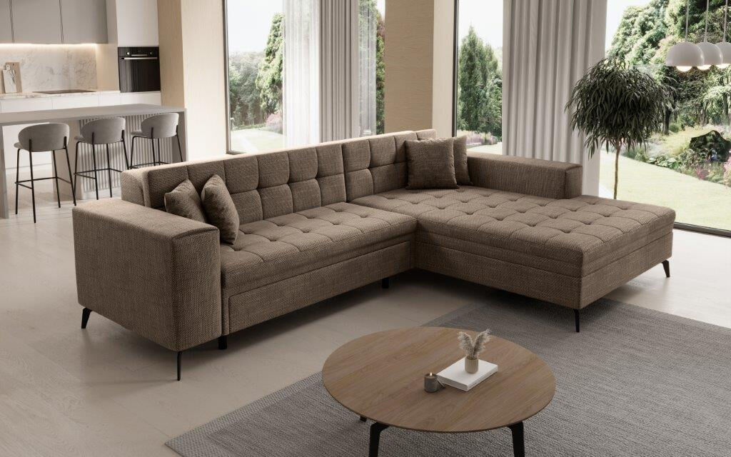 Kotna sedežna garnitura JON 3 je modernega dizajna. Na voljo je v več barvah. Primerna je za vsak prostor. Sedežni je potrebno določiti levi ali desni kot. Prednost je tudi spalna funkcija katera se raztegne z dolphin mehanizmom. Sedež je izdelan iz valovite vzmeti in kombinacije visoko elastične pene, ki bo zagotovo pripomogla k udobnemu počitku.