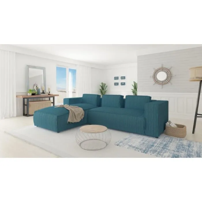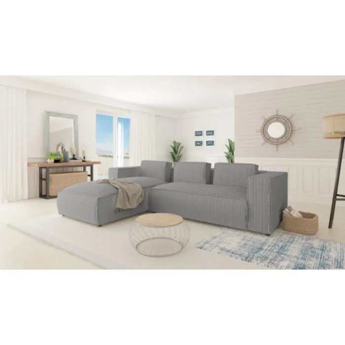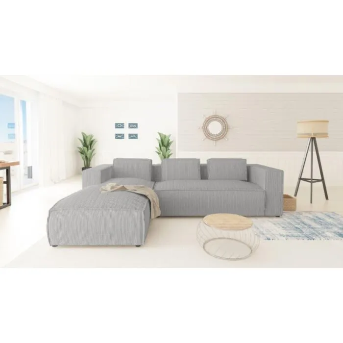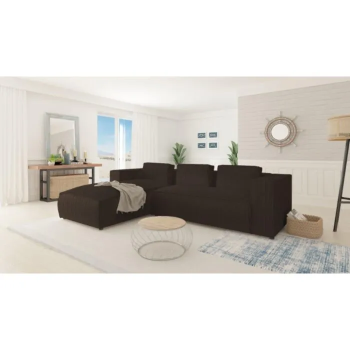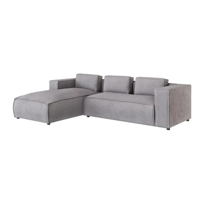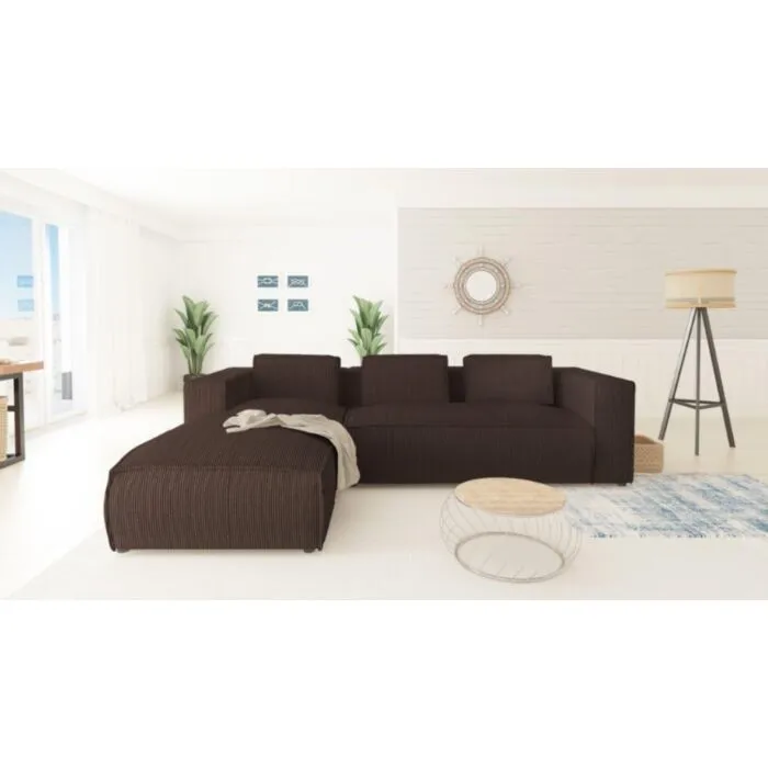 Kotna sedežna garnitura KOLIN je odlična garnitura po odlični ceni. Poseben dizajn mehke tkanine. Garnitura ima levi ali desni kot, katerega je potrebno izbrati. Nogice ima črne barve. Sedežna je vzmetena z valovitimi vzmetmi. Narejena je iz visoko elastične poliuretanske pene. Okvir je iz masivnega lesa, iverne plošče, HDF, MDF.