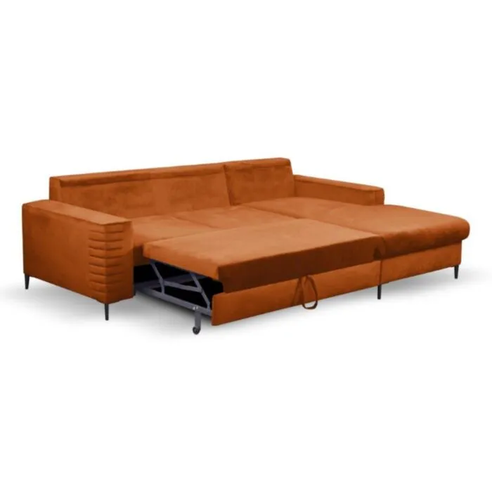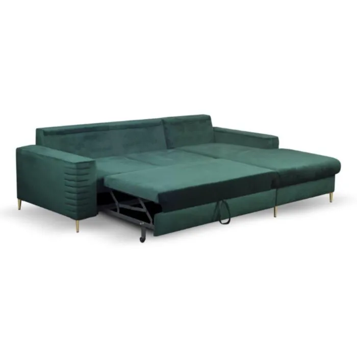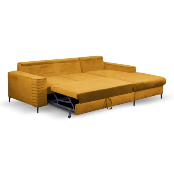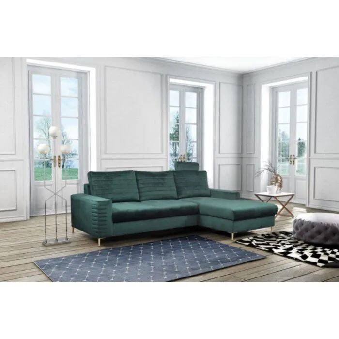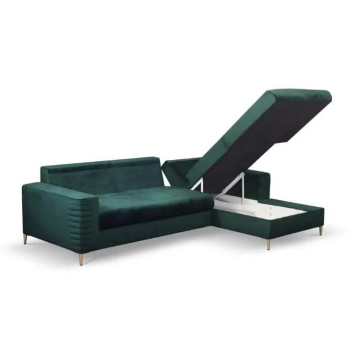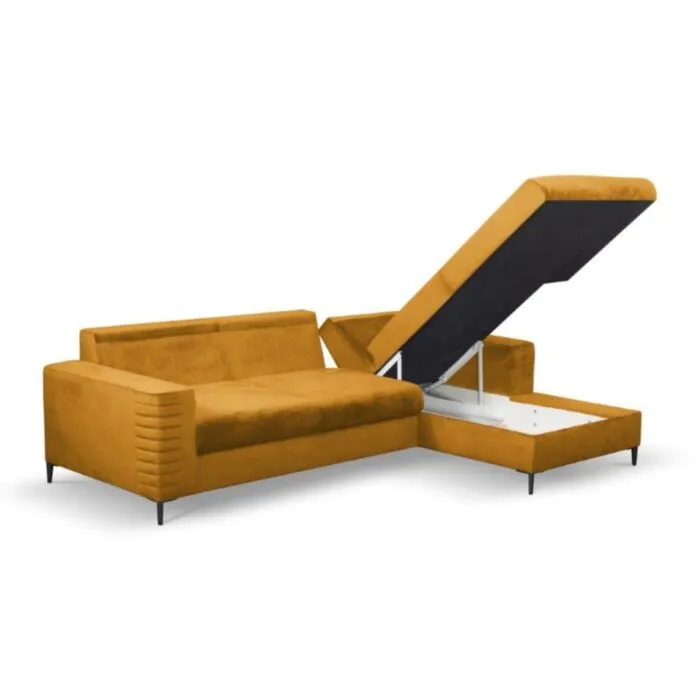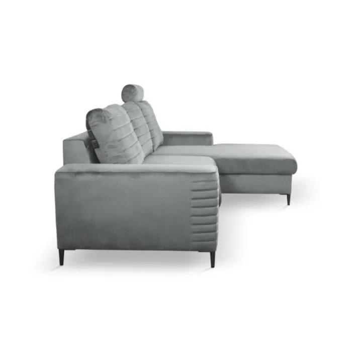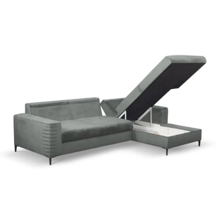 Kotna sedežna garnitura KOLY je narejena iz hvalitetne PU pene, vsebuje valovito vzmetenje, oblazinjeno hrbtišče ter posodo za posteljnino. Prav tako vas bo očarala s svojim dodatnim ležiščem.
