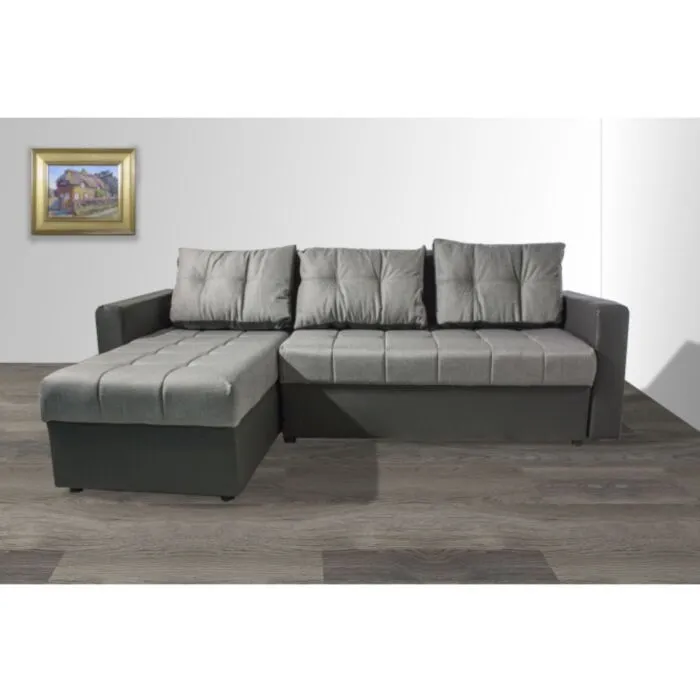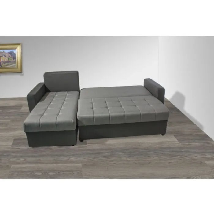 Kotna sedežna garnitura LUXUS 2 je odlična garnitura po odlični ceni. Narejena v kombinaciji umetnega usnja in blaga. Zraven garniture dobite pripadajoče blazine. Garnitura je standardne izvedbe, tako da jo lahko postavite levo ali desno. Garnitura se raztegne tudi v posteljo pod katero je predal.