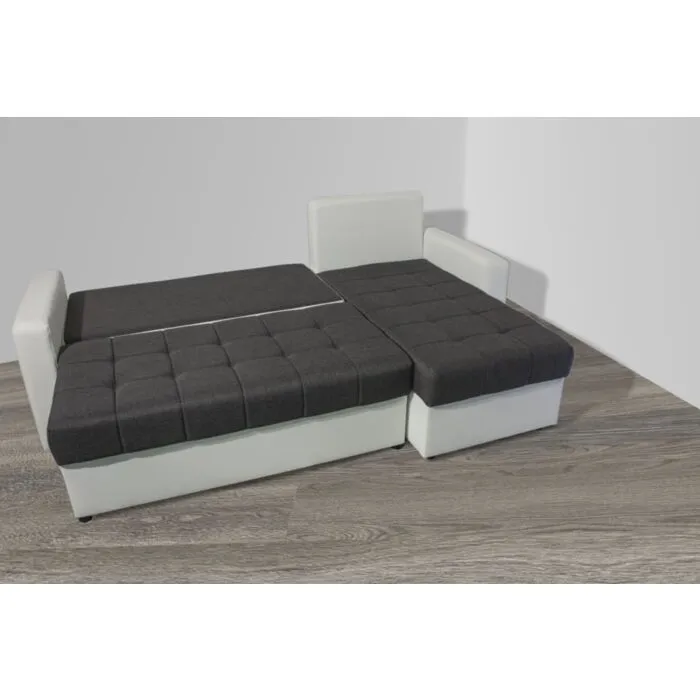 Kotna sedežna garnitura LUXUS je odlična garnitura po odlični ceni. Narejena v kombinaciji umetnega usnja in blaga. Zraven garniture dobite pripadajoče blazine. Garnitura je standardne izvedbe, tako da jo lahko postavite levo ali desno. Garnitura se raztegne tudi v posteljo pod katero je predal.