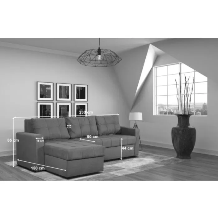 – D: 230 cm x G: 150 cm x V: 85 cm