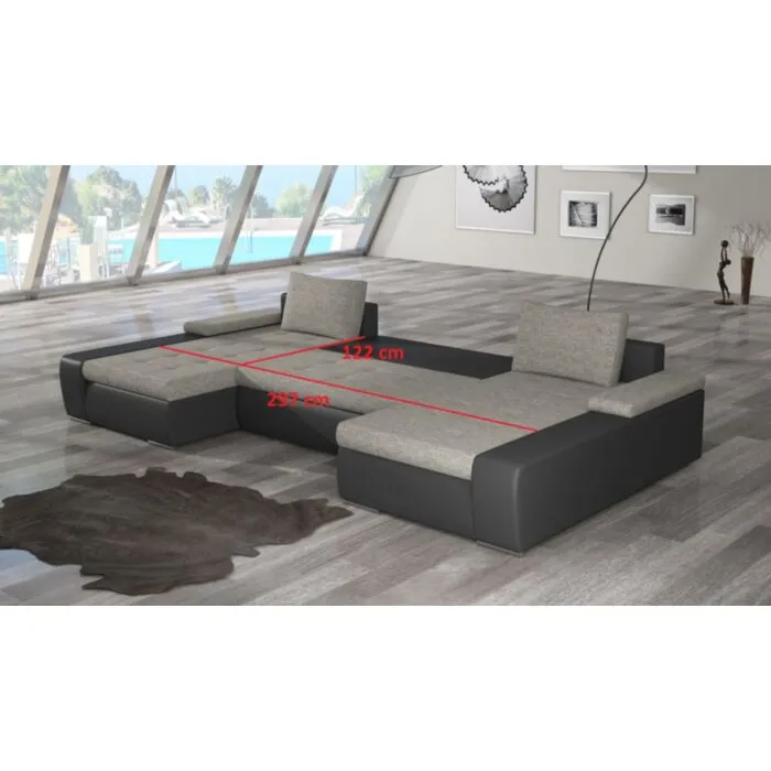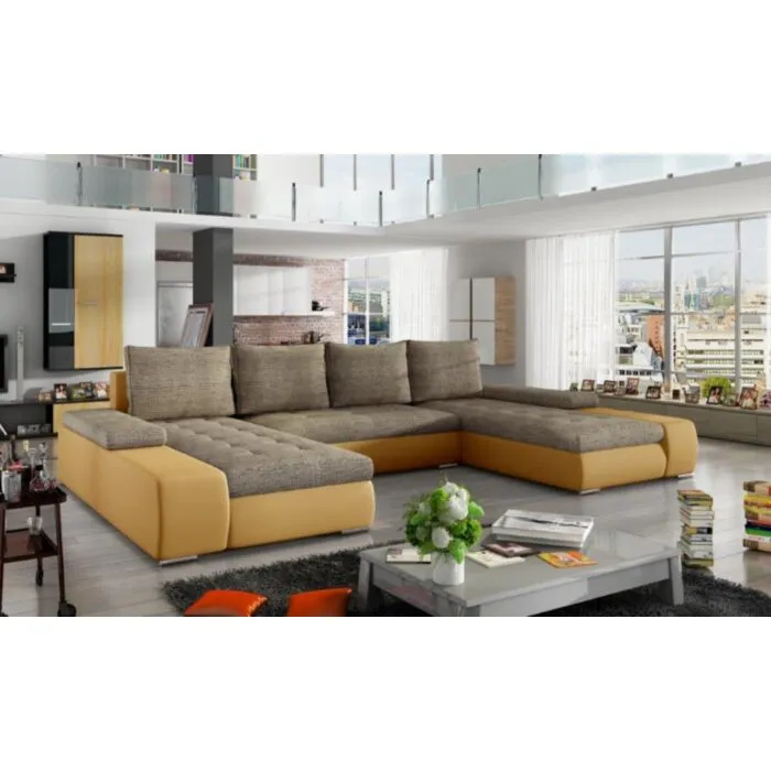 Kotna sedežna garnitura MARIO je odlična garnitura po odlični ceni. Narejena iz umetnega usnja v kombinaciji blaga. Zraven garniture prejmete pripadajoče blazine. Pri garnituri ni potrebno določati kota, ker je garnitura univerzalna in je možna postavitev tako levo kot desno. Garnitura se raztegne tudi v posteljo ter vsebuje zaboj za shranjevanje. Sedežna je vzmetena z valovitimi vzmetmi.