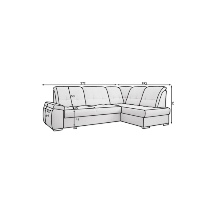 – D: 272 cm x G: 192 cm x V: 95 cm