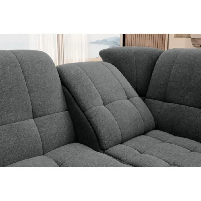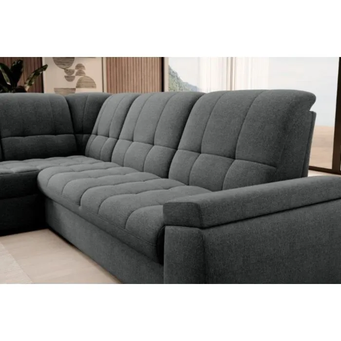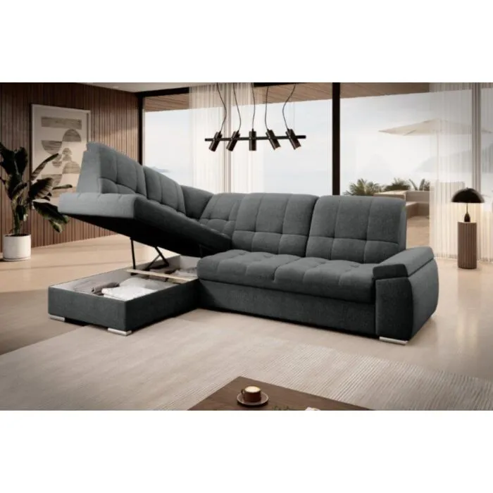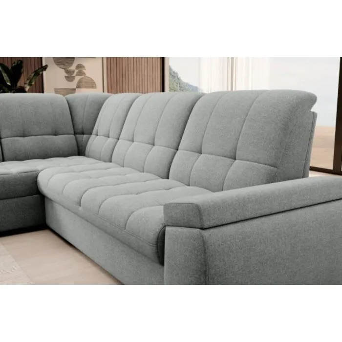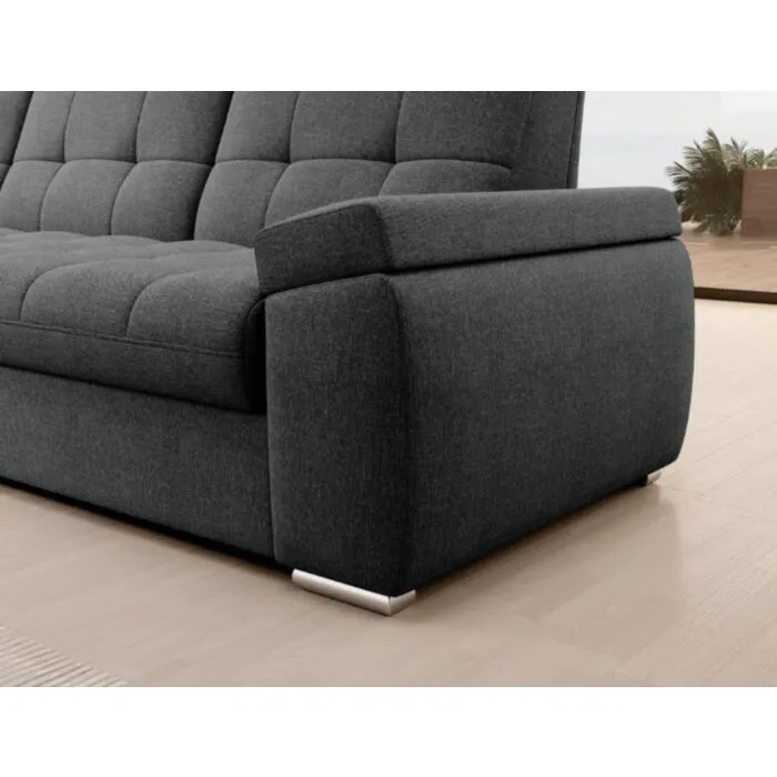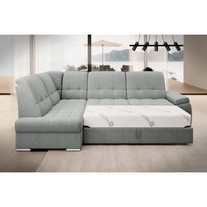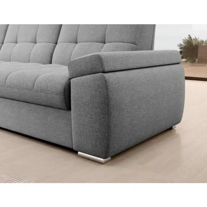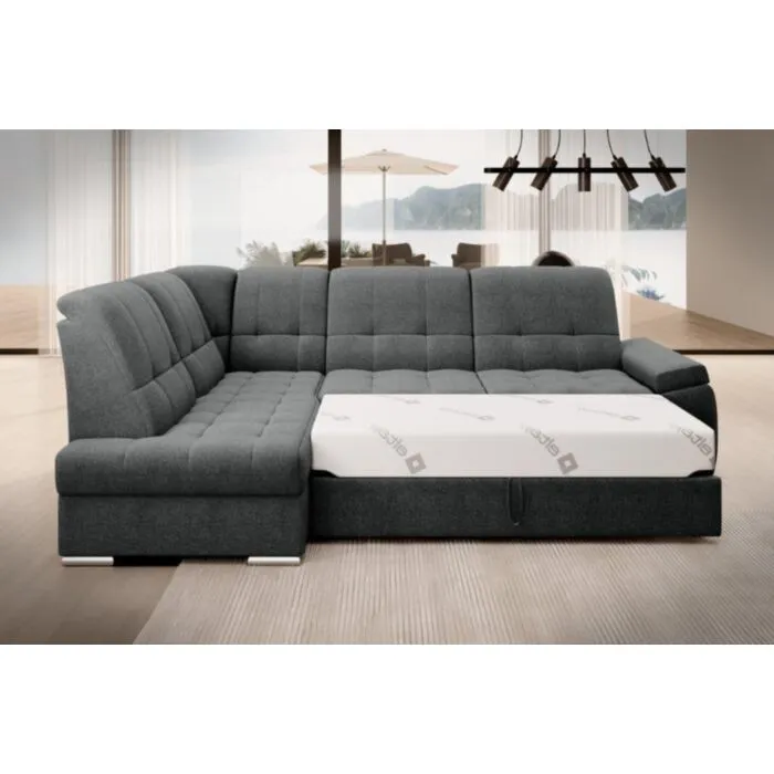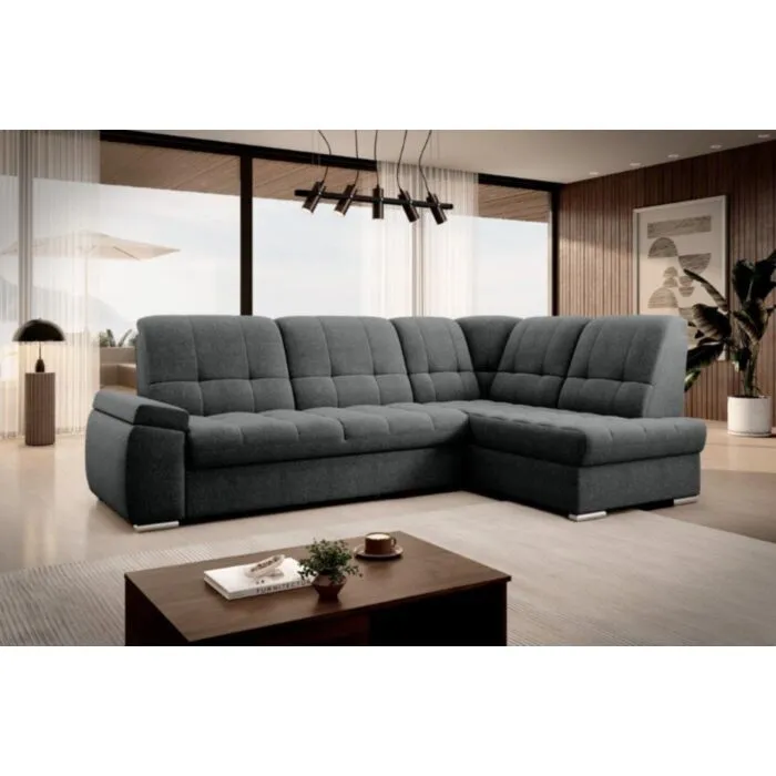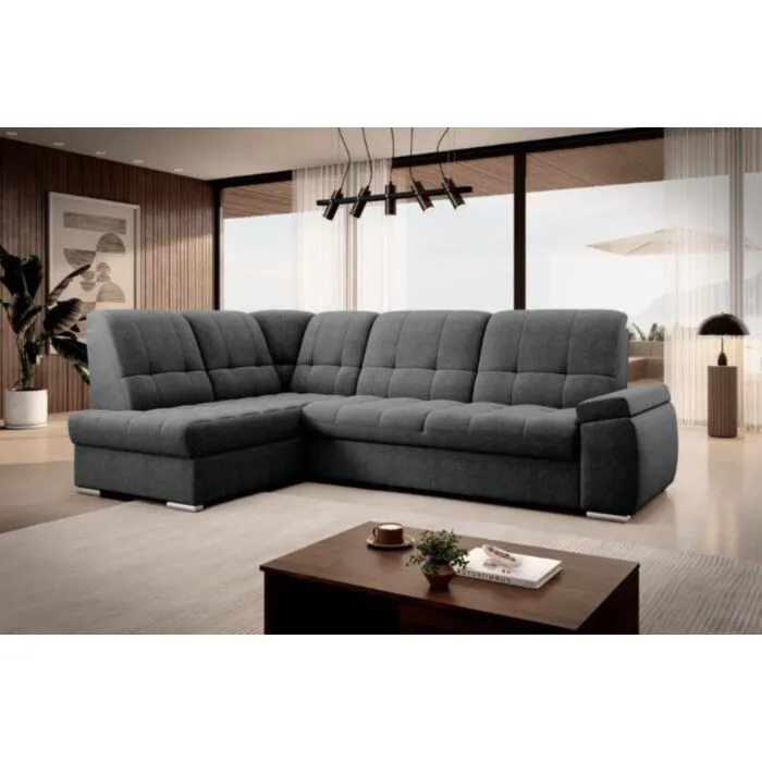 Kotna sedežna garnitura MAT3  je narejena iz kvalitetnih materialov in dobavljiva v več različnih barvah. Ima nastavljiv naslon za hrbet. Garnitura je opremljena z dodatnim ležiščem katero se raztegne z dolphin mehanizmom. Prav tako vsebuje zaboj za shranjevanje. Nogice so elegantne v srebrni barvi, podale se bodo v vsako dnevno sobo. Sedežni morate določiti levi ali desni kot.