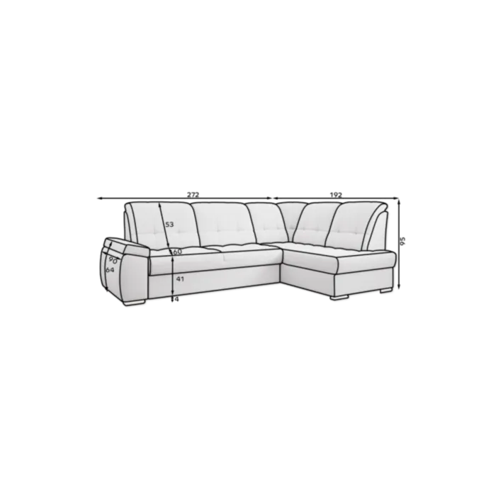 – D: 272 cm x G: 192 cm x V: 95 cm