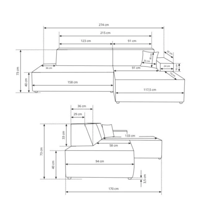 Njena prednost je ta da ima prostoren predal za shranjevanje različnih stvari, kot je posteljnina. Prav, tako ima funkcijo spanja, saj se raztegne v udobno ležišče. Sedežna garntiuta ima velike, udobne blazine, ki dodatno pripomorejo k udobju in podpirajo vaše telo pri počitku.