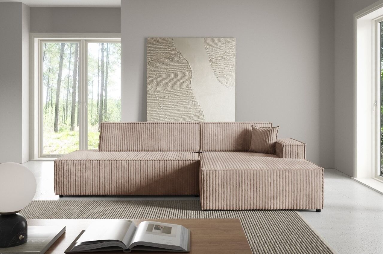Kotna sedežna garnitura MAURICIUS je osupljiv kos pohištva z brezčasnim slogom, ki se bo podal k vsakemu dekorju. Njene zaokljene, mehke oblike in minimalističen, subtilen dizajn bo dodal vsaki notrajnosti pridih lahkotnosti in udobja. Je popolna izbira za vse, ki iščejo kombinacijo elegance, modernosti in funkcionalnosti.