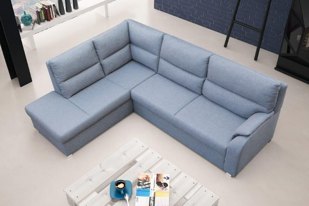 Kotna sedežna garnitura MINA je zelo praktična in funkcionalna. Narejena je v kvalitetnem blagu. Garnitura ima levi ali desni kot, katerega morate izbrati. Garnitura je vzmetena z valovitimi vzmetmi. Raztegne se v dodatno ležišče ter vsebuje zaboj za shranjevanje.
