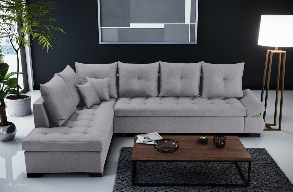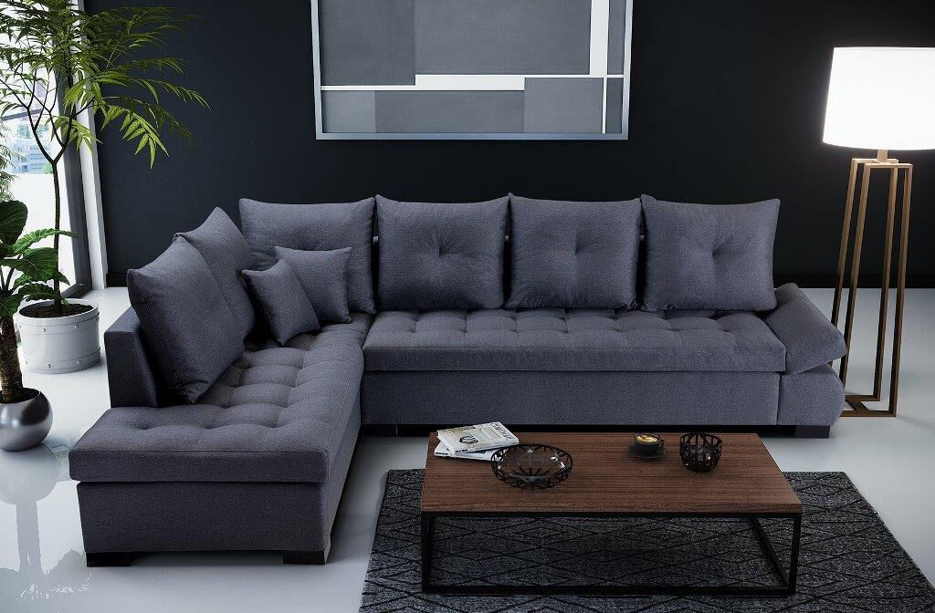 Kotna sedežna garnitura NEON je praktična in udobna. Popestrila bo vaš dnevni prostor s svojim modernim dizajnom, ter elegantnimi črnimi nogicami. Na voljo v različnih barvah blaga. Vzmetena je z valovitimi vzmetmi.