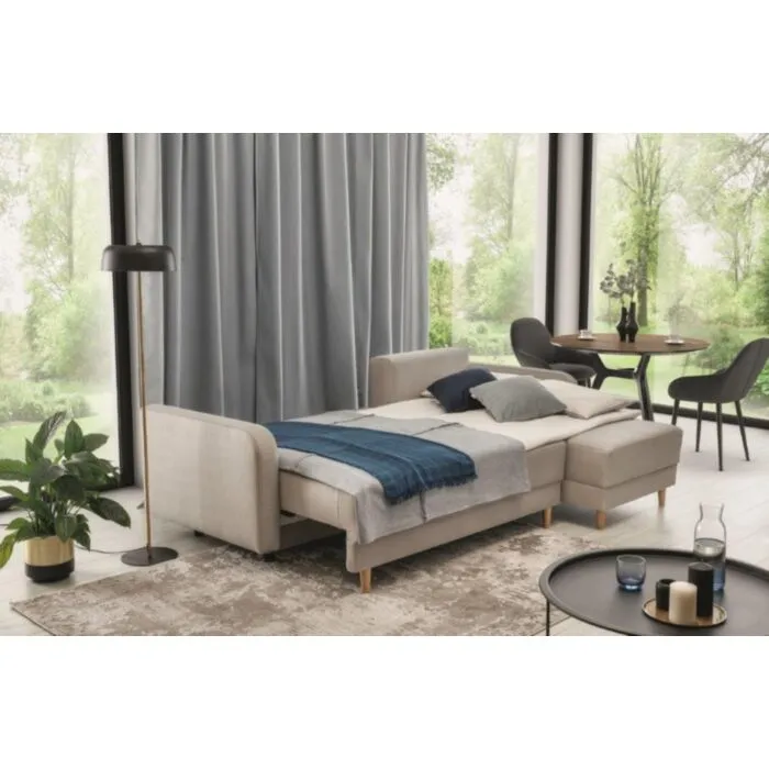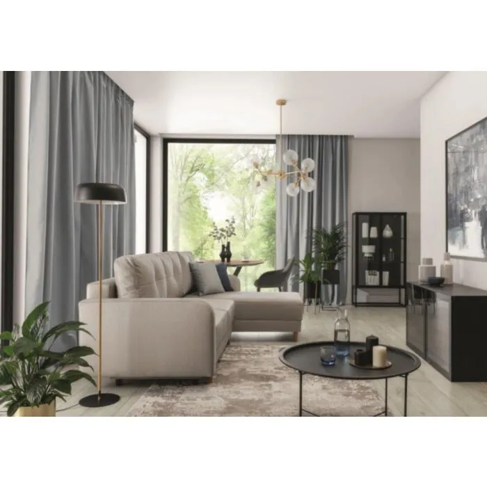 Kotna sedežna garnitura OXY 2 je elegantna, lepa in udobna garnitura v modernem stilu, z okrasnimi prešitimi šivi. Sedežna je vzmetena z valovitimi vzmetmi v kombinaciji z visokoelastično peno. Sedežna je praktična ter udobna za uporabo, saj se raztegne v ležišče in vsebuje zaboj za shranjevanje. Sedežna je univerzalna kar pomeni, da ji ni potrebno določiti kota. Lahko jo postavite levo ali desno.