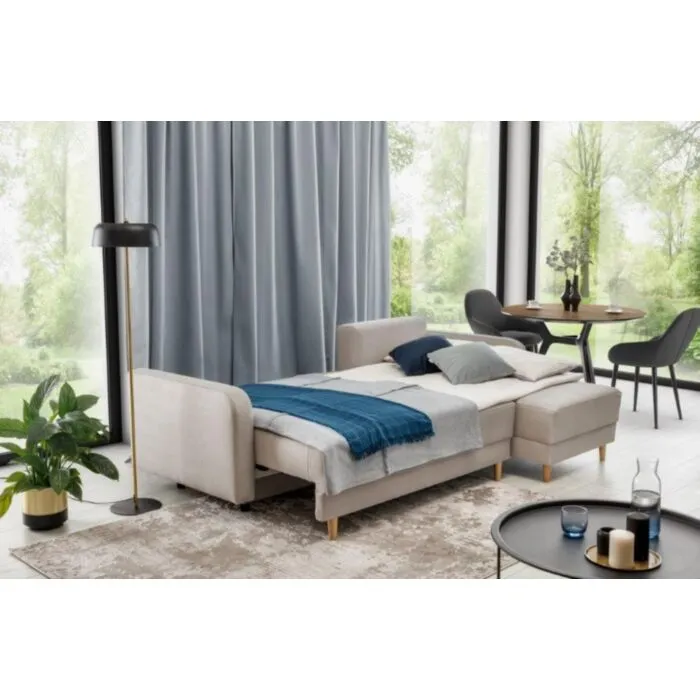 Kotna sedežna garnitura OXY je elegantna, lepa in udobna garnitura v modernem stilu, z okrasnimi prešitimi šivi. Sedežna je vzmetena z valovitimi vzmetmi v kombinaciji z visokoelastično peno. Sedežna je praktična ter udobna za uporabo, saj se raztegne v ležišče in vsebuje zaboj za shranjevanje. Sedežna je univerzalna kar pomeni, da ji ni potrebno določiti kota. Lahko jo postavite levo ali desno.