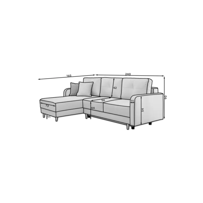 – D: 240 cm x G: 165 cm x V: 90 cm