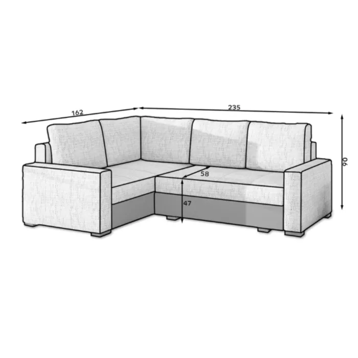 – D: 235 cm x G: 162 cm x V: 90 cm