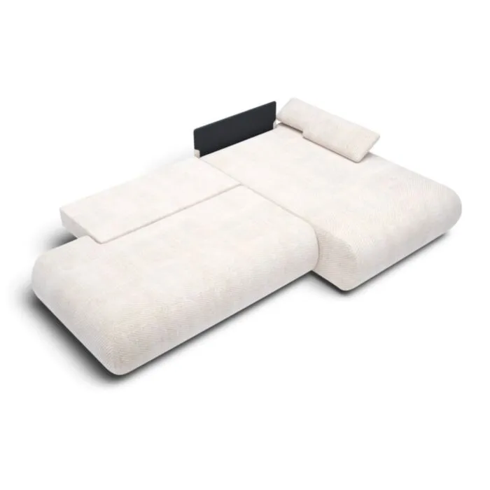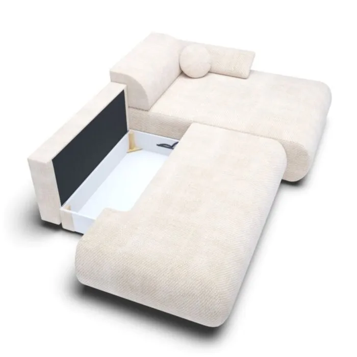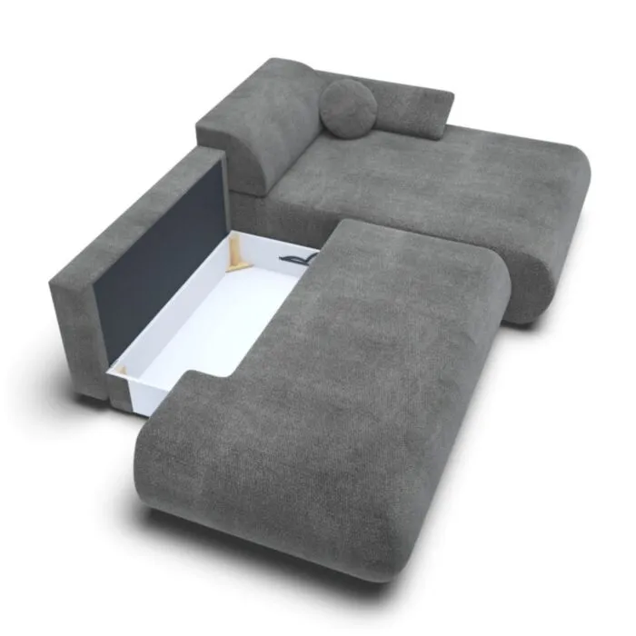 Njena prednost je ta, da ima prostoren predal za shranjevanje različnih stvari, kot je posteljnina. Prav, tako ima funkcijo spanja, saj se raztegne v udobno ležišče. Sedežna garnitura ima mehko in udobno vzglavje, katero dodatno pripomore k udobju in podpori telesa pri počitku. Njena prednost je tudi to, da ima oblazinjeno hrbtišče, tako da lahko prostostoječe stoji v prostoru, kjer bo pravi čudež, zaradi svoje elegance. Ima tudi dvižni rokonaslon, kar omogoča spreminjenje naklona rokonaslona po vašim potrebam in željam.
