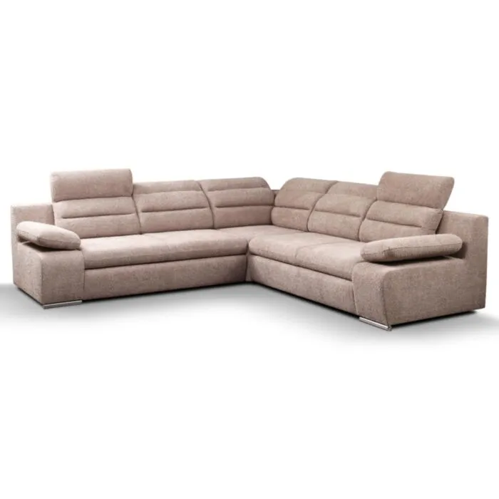 Kotna sedežna garnitura RADIO ima moderen dizajn in eleganten stil, ki se bo zlil v vsak prostor. Okvir je narejen iz borovega lesa in odpira se s mehanizmom Dolphin. Vsebuje dodatno ležišče ter predal za posteljnino. Polnjena je s peno, ima vzmetenje tipa A in ima nastavljive vzglavnike ter počivalnike za roko.