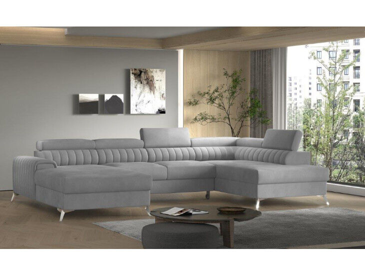 Kotna sedežna garnitura RASI dviguje nivo sodobnega bivalnega prostora, zahvaljujoč zanimivi obliki ter dizajnerskim jeklenim kromiranim nogam višine 9 cm. Kotna sedežna garnitura RASI je opremljena tudi z zabojem za posteljnino. Prednost je tudi spalna funkcija katera se raztegne z dolphin mehanizmom. Sedež je izdelan iz valovite vzmeti in kombinacije visoko elastične pene, ki bo zagotovo pripomogla k udobnemu počitku. Ne pozabimo na sodobne, nastavljive vzglavnike.