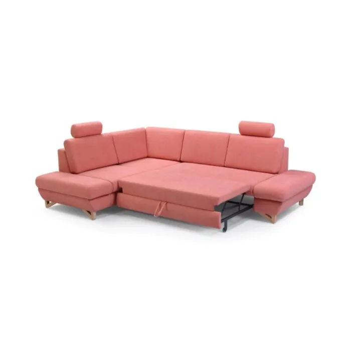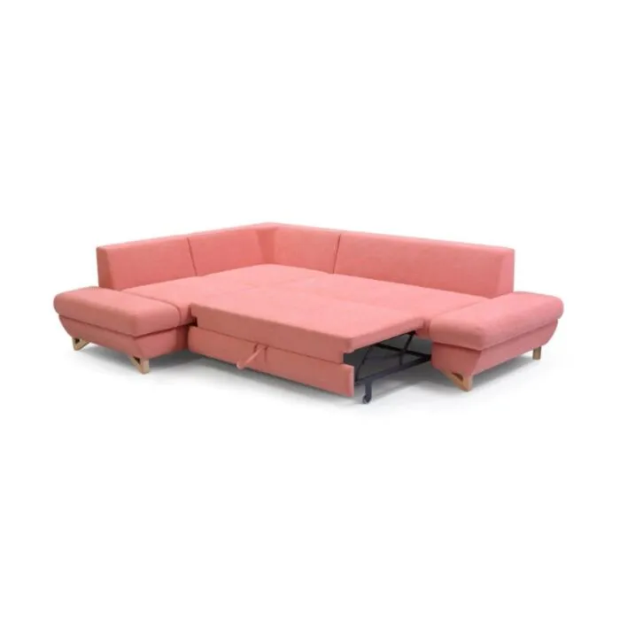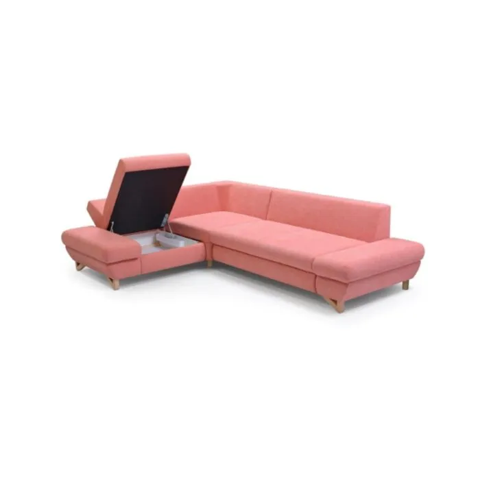 Zagotovite si udobje z moderno sedežno garnituro STANE 2. Oblazinjena je z blagom v roza barvi. Sedežna garnitura je vzmetena z lesenimi nogicami. Ima pomožno ležišče in prostor za shranjevanje stvari. Ima tudi nastavljiva vzglavnika z nastavljivima rokonaslonoma.
