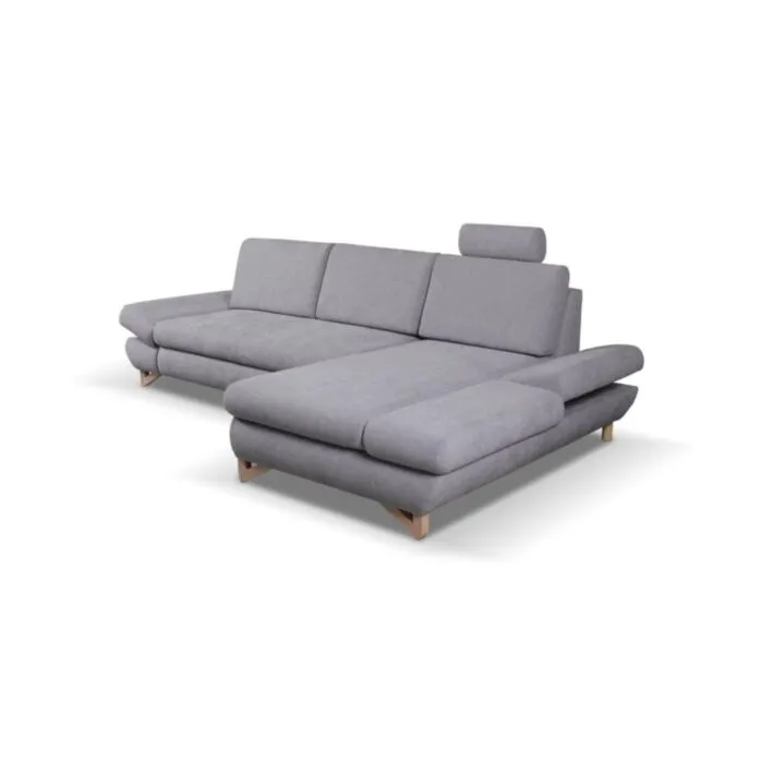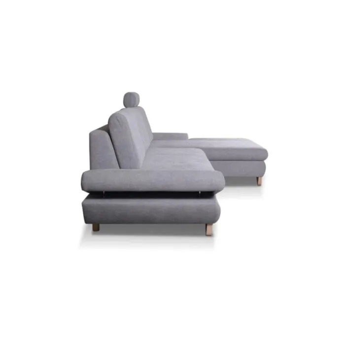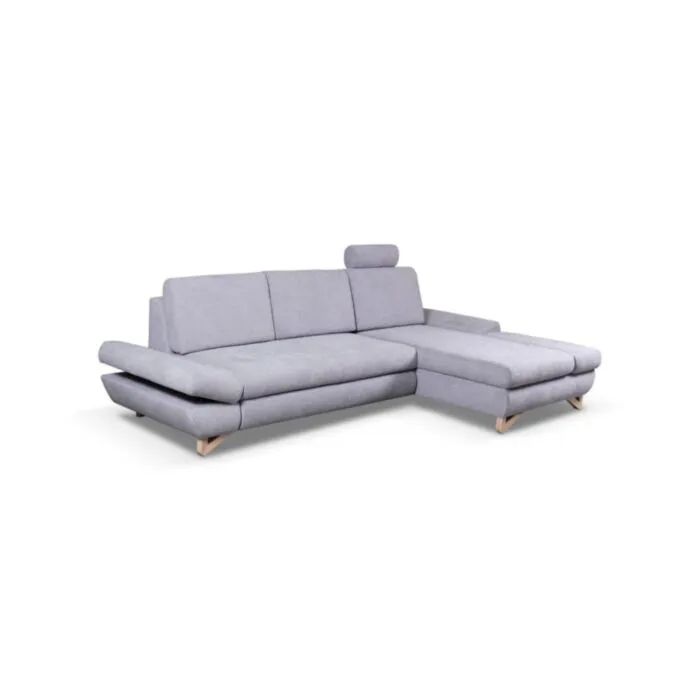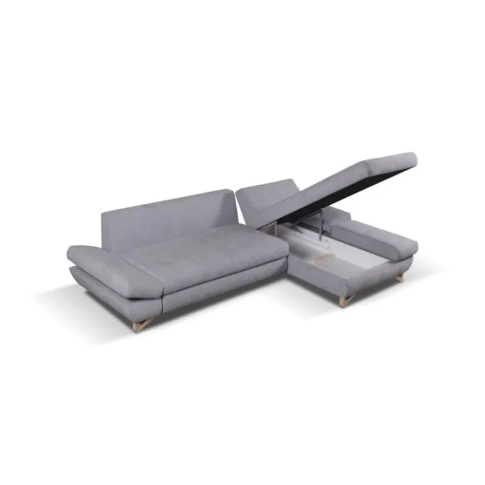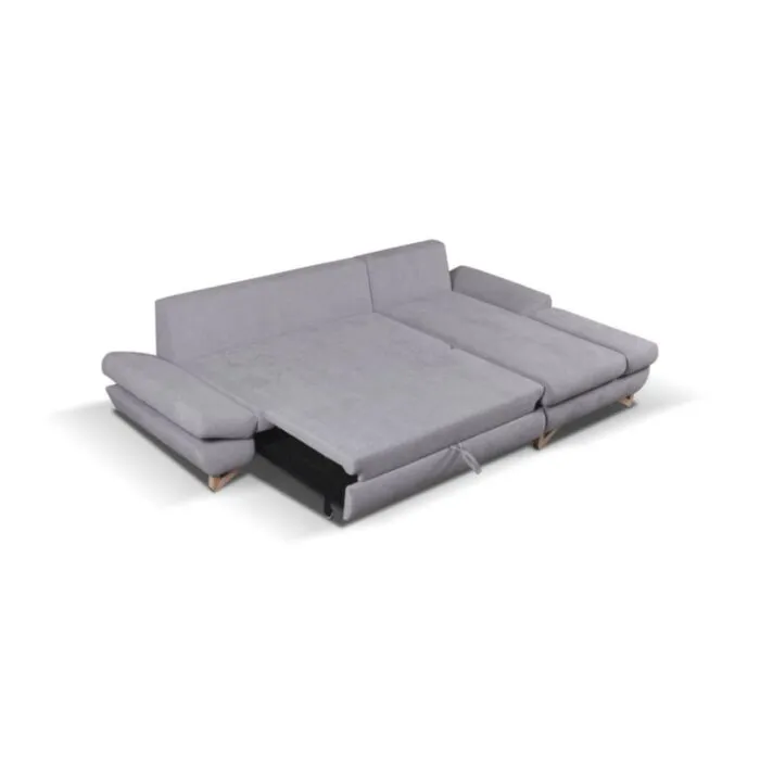 Kotna garnitura STANE je kotna sedežna garnitura, katera je narejena iz kvalitetnega blaga v sivi barvi. Garnitura se raztegne v ležišče ima zaboj za posteljnino, nastavljiv vzglavnik in rokonaslona. Nogice sedežne so lesene. Sedežna je vzmetena. Moderne linije vas bodo prepričale.