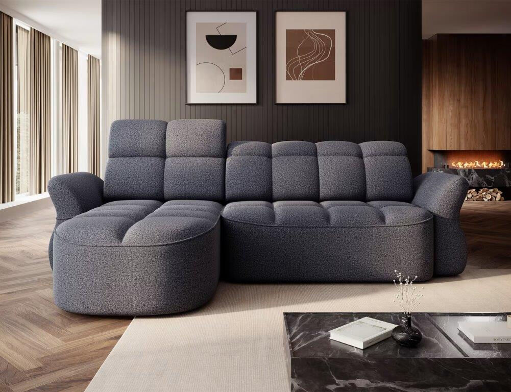 Kotna sedežna garnitura TANJA 1 je modernega dizajna. S svojim elegantnim videzom se bo podala v vsak prostor. Sedežna je praktična za uporabo saj ima električni pomik sedišča, ter vsebuje zaboj za shranjevanje. Garnitura TANJA 1 nudi udobje, s svojo mehko tkanino ter nastavljivimi vzglavniki. Vzmetena je z valovitimi vzmetmi.
