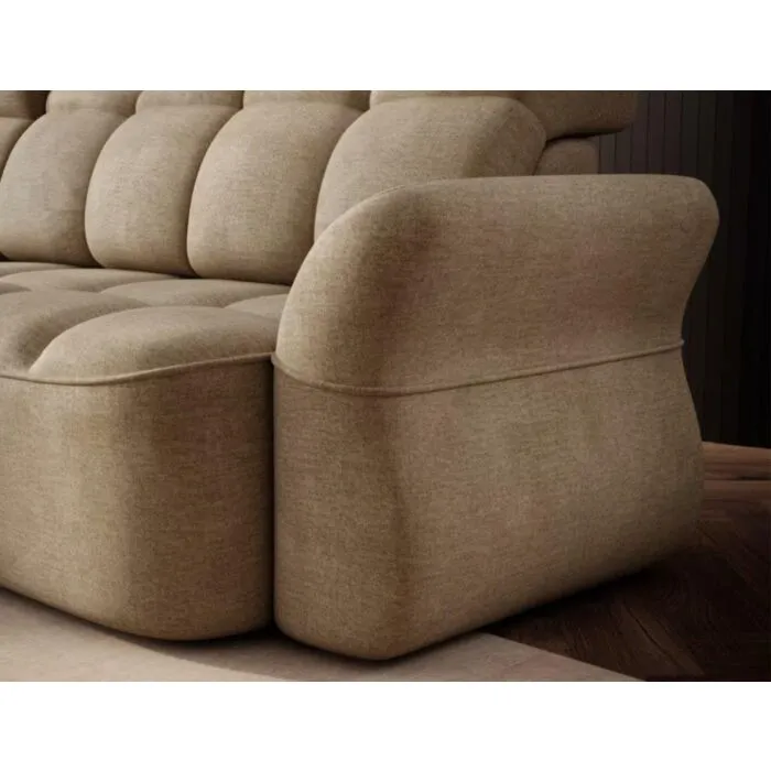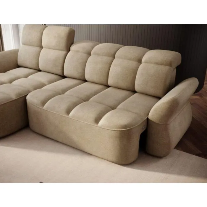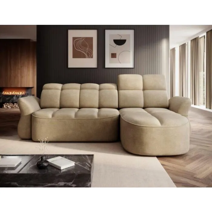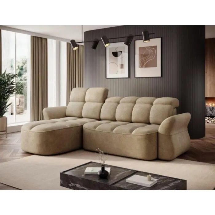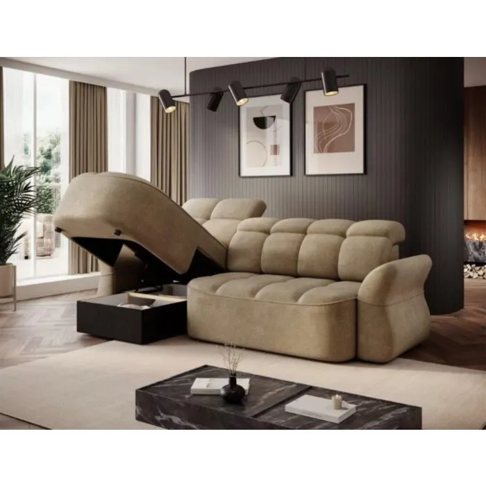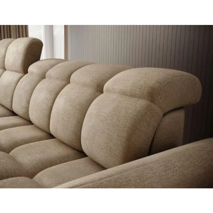 Kotna sedežna garnitura TANJA je modernega dizajna. S svojim elegantnim videzom se bo podala v vsak prostor. Sedežna je praktična za uporabo saj ima električni pomik sedišča, ter vsebuje zaboj za shranjevanje. Garnitura TANJA nudi udobje, s svojo mehko tkanino ter nastavljivimi vzglavniki. Vzmetena je z valovitimi vzmetmi.