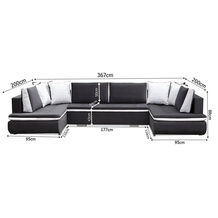 – D: 367 cm x G: 200 cm x V: 88 cm